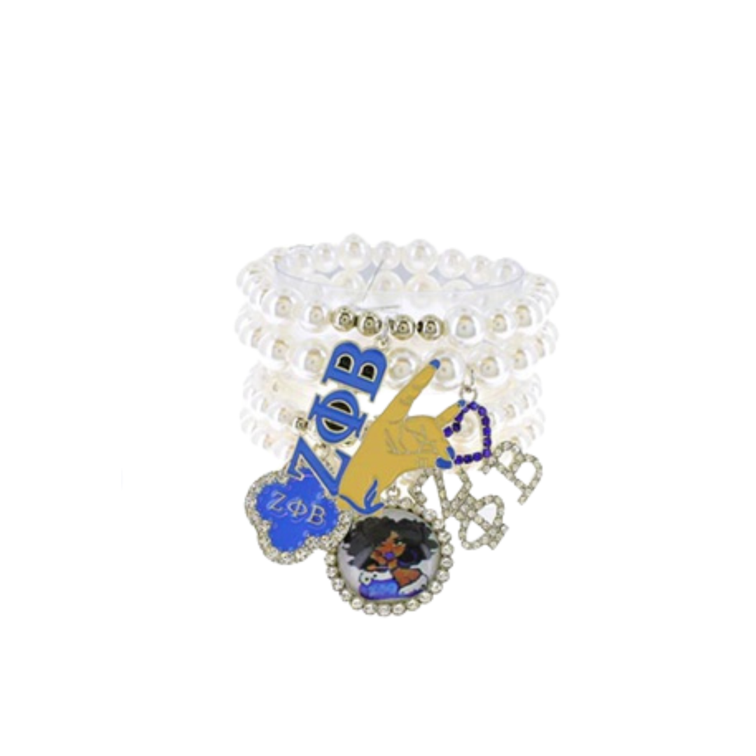 Zeta Phi Beta 4-Strand Multi-Charm Bracelet – Royal Blue & White