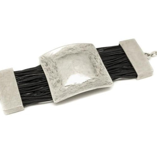 Leather Bracelet: Leather & Pewter with Puzzle Square Disc Design