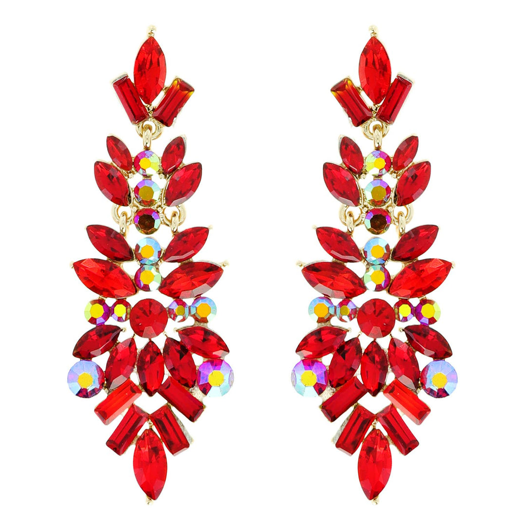 3-Row Rectangle Cut Crystal Gem Cluster Bracelet: Red