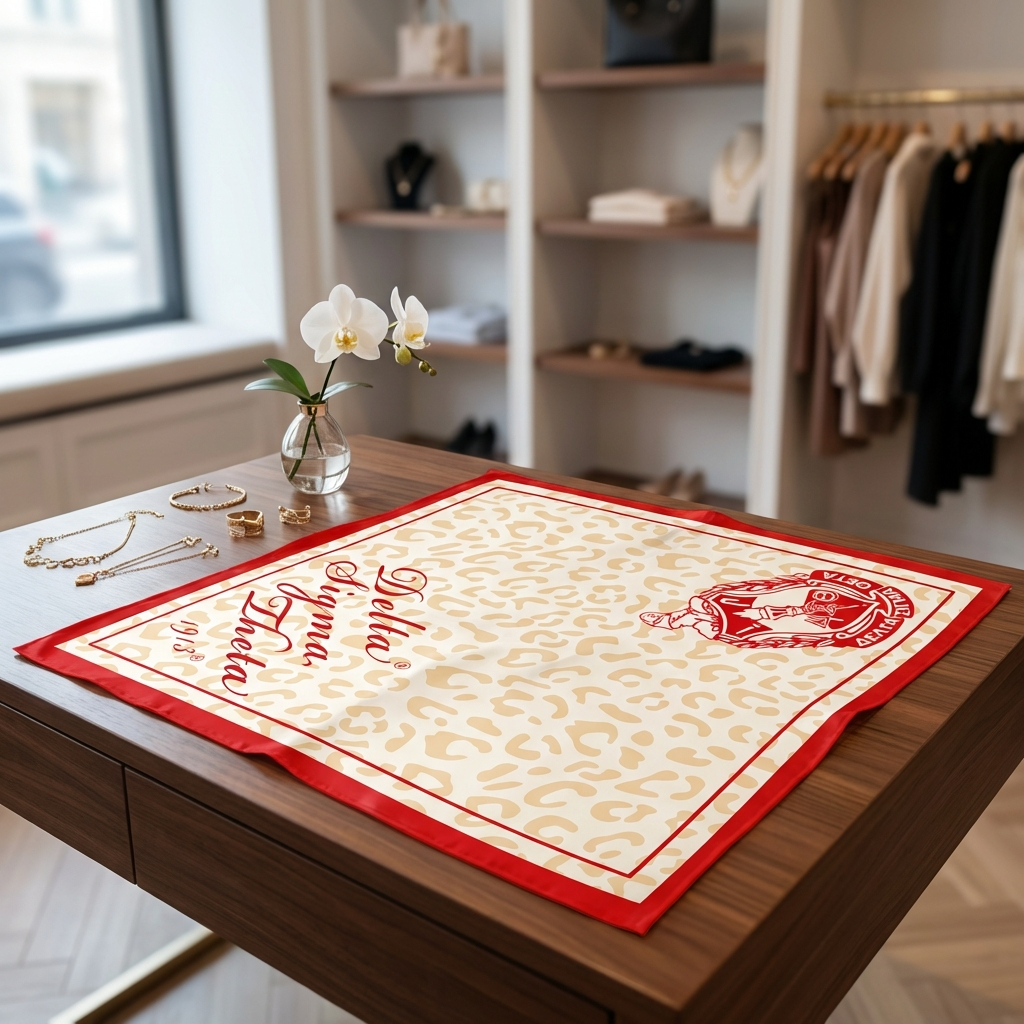 Meet the Delta Sigma Theta Animal Print Scarf—a boutique-grade statement piece designed to bring bold style and polished sorority pride together in one unforgettable look. Crafted in 100% polyester silk and sized at 35” x 35”, this square scarf has a smooth, luxe feel with an elegant drape that ties beautifully at the neck, in the hair, or on your favorite handbag.