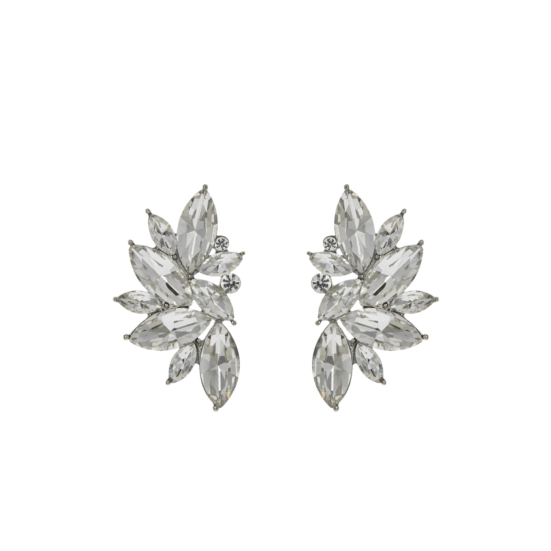 Elevate your evening look with our gemstone cluster post earrings, designed for effortless glamour. Featuring a radiant cluster of sparkling crystals arranged in a chic leaf-inspired silhouette, these earrings deliver maximum brilliance from every angle. Lightweight yet eye-catching, they’re the perfect accessory to complete your formal ensemble.