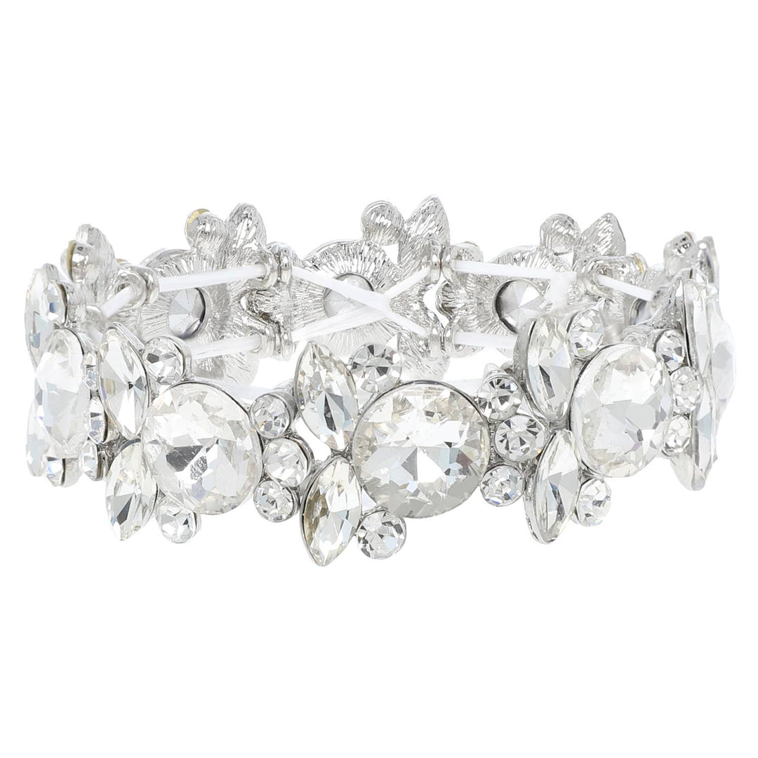Baroque Crystal Gemstone Cluster Stretch Bracelet: Clear Silver