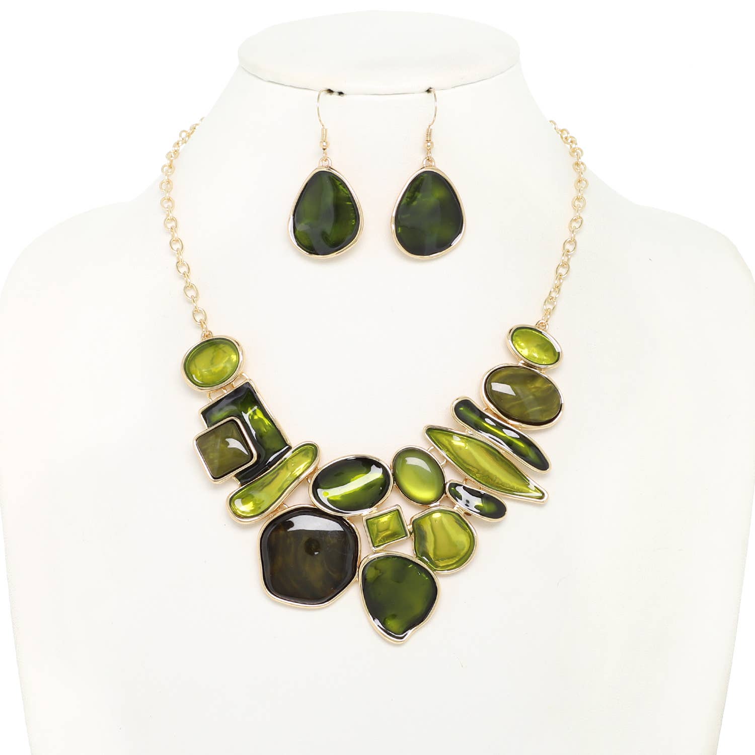 Marquise Rhinestone Leaf Cluster Necklace & Earring Set: Black