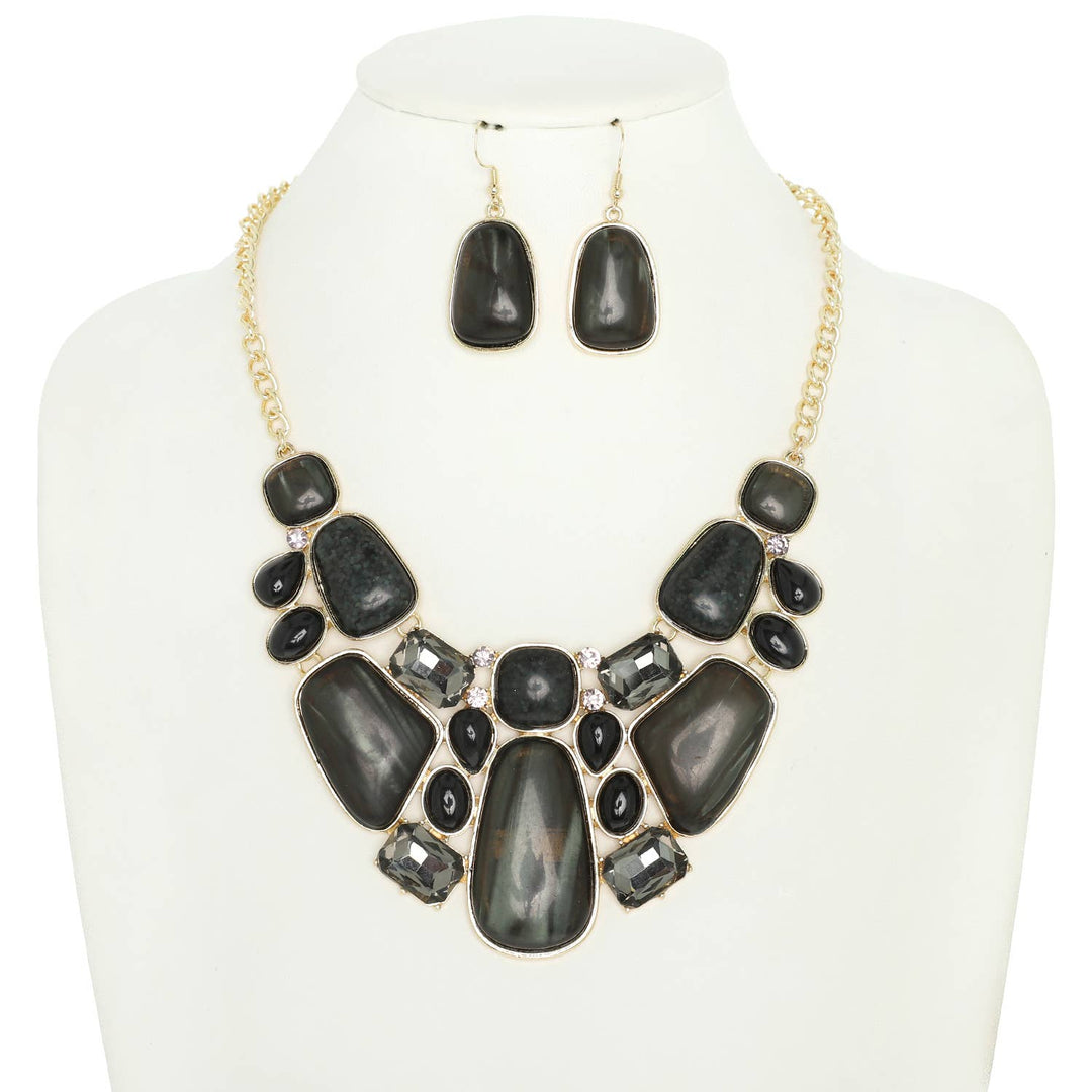 Assorted A Gate Crystal Gemstone Bib Necklace Set : Black