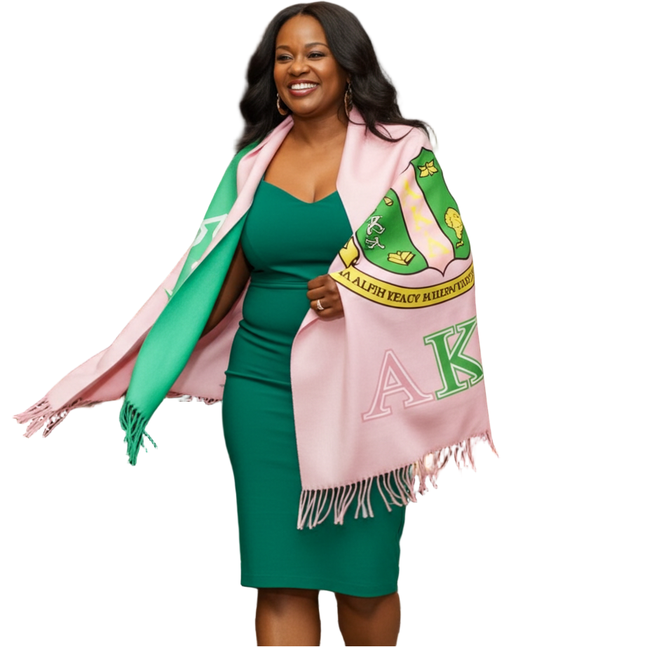 AKA Sorority Pale Pink & Green Fashion Shawl Scarf