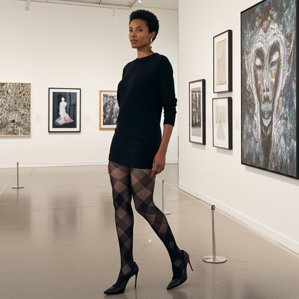 Delicate 30 denier sheer tights with a classic diamond check pattern. These tights have flat seams and a cotton gusset.