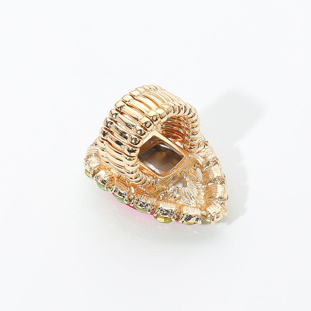 Crafted with a comfortable stretch band, this cocktail ring offers a flexible fit while maintaining its structured, high-impact silhouette. The gold-tone setting enhances the brilliance of the crystals, creating a luxe, fashion-forward look that pairs beautifully with dresses, tailored sets, or statement ensembles.
