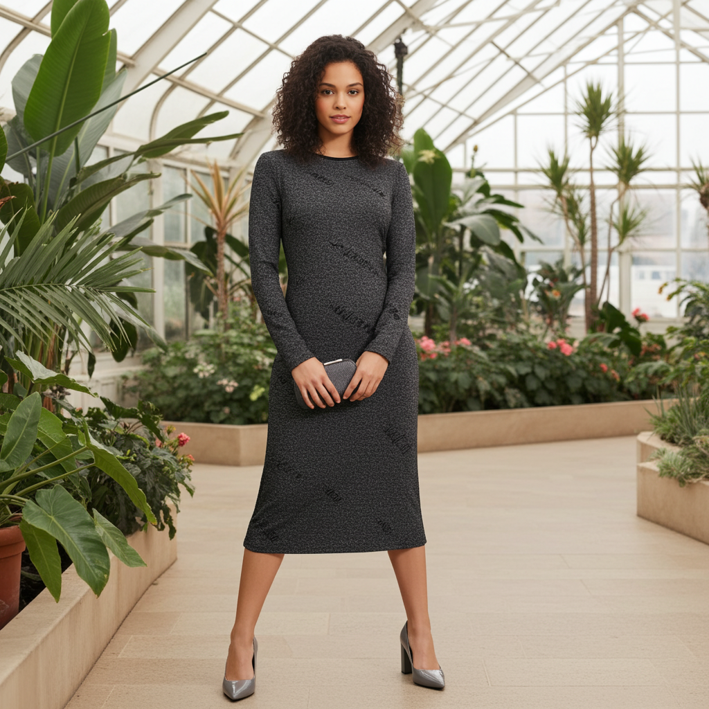 Stylize your figure with the flattering and comfortable slim silhouette of this fitted long sleeve dress with round neck and skirt below the knee. Its pleasant cutwork fabric is enhanced by the print of the matching Desigual logo. Round neck Print of matching Desigual logo in different typographies Slim fit Skirt below the knee Fitted long sleeve Outer fabric composition: 70% POLYESTER, 28% VISCOSE, 2% ELASTANE Care: Machine wash cold, inside out Do not bleach Do not dry cle