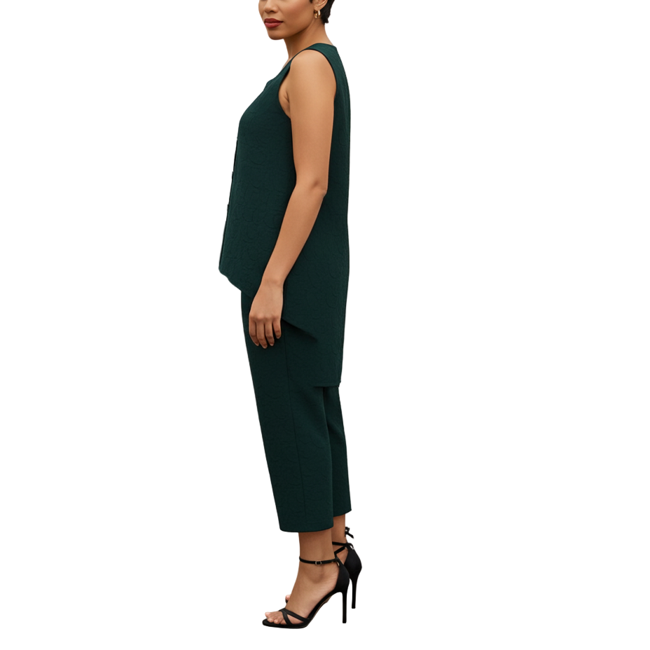 El pantalón Paros realza el look con un corte crop top holgado , cintura elástica y un tejido jacquard texturizado que añade un toque floral. Elegante pero sencillo, es ideal para ocasiones formales o informales, tanto de día como de noche.