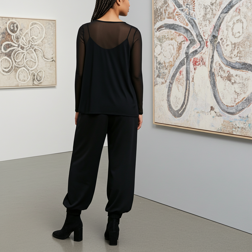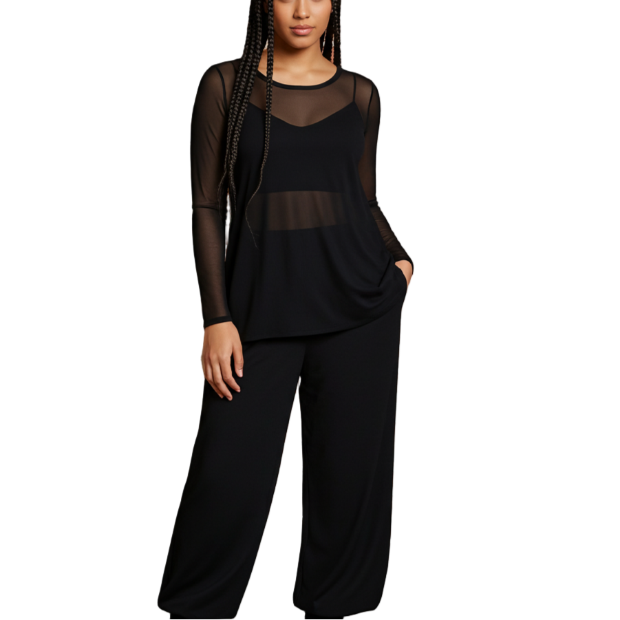 Tllly Top – Medium Length Sheer Mesh Tunic | Black