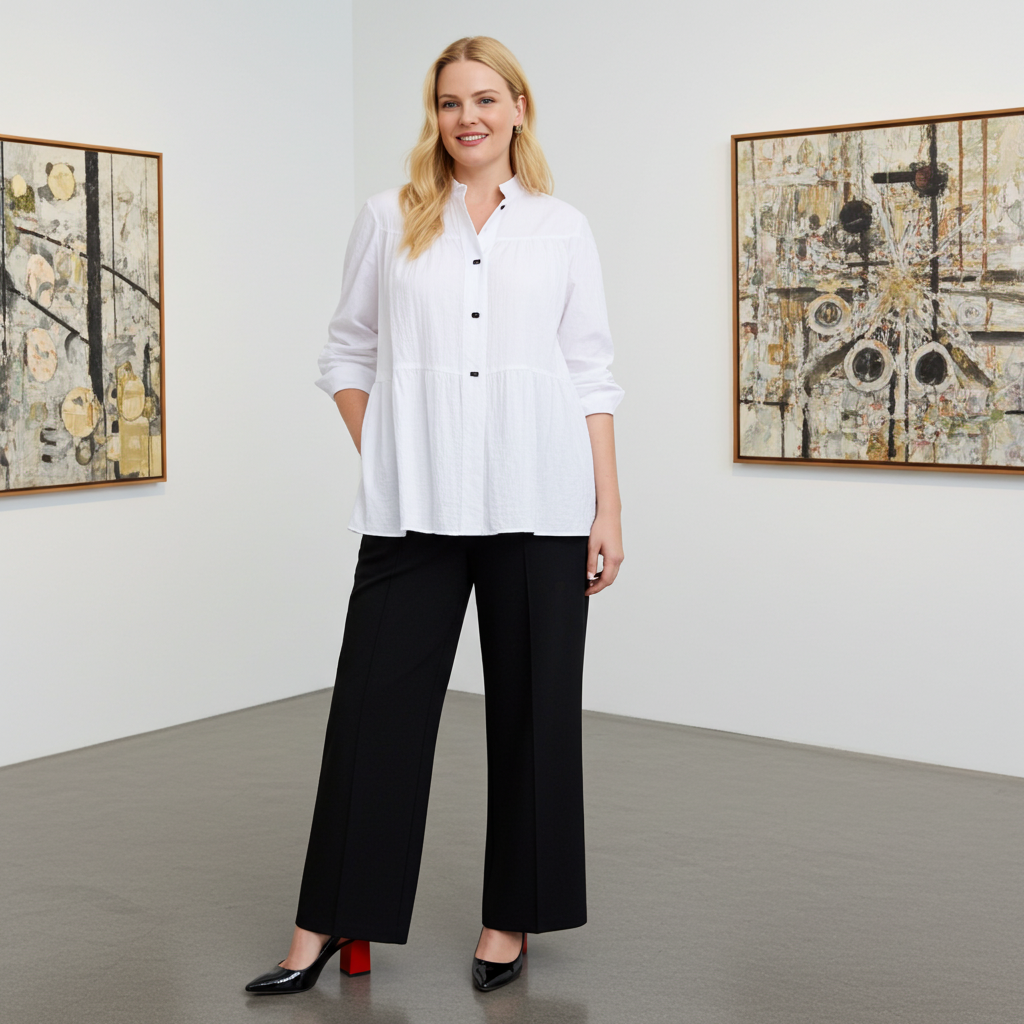 Esta divertida blusa presenta una abertura en el cuello alto corto, mangas tres cuartos con puños fruncidos y un botón al frente. Las costuras fruncidas crean tres niveles por delante y por detrás, mientras que su diseño arrugado la convierte en la prenda ideal para viajar.