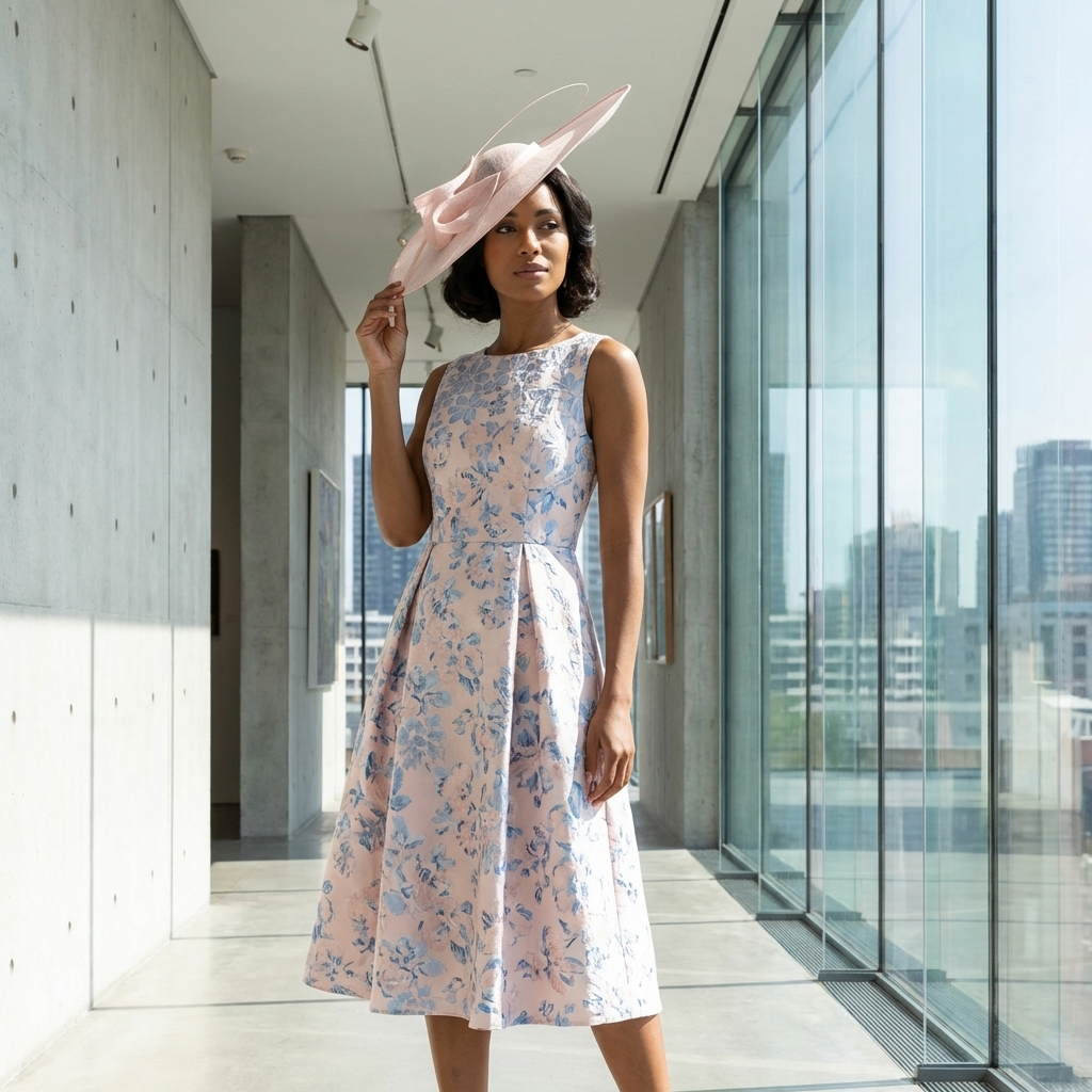 Ideal for the Kentucky Derby, race day events, formal gatherings, church, weddings, and sophisticated daytime affairs, this piece delivers timeless drama with polished restraint.